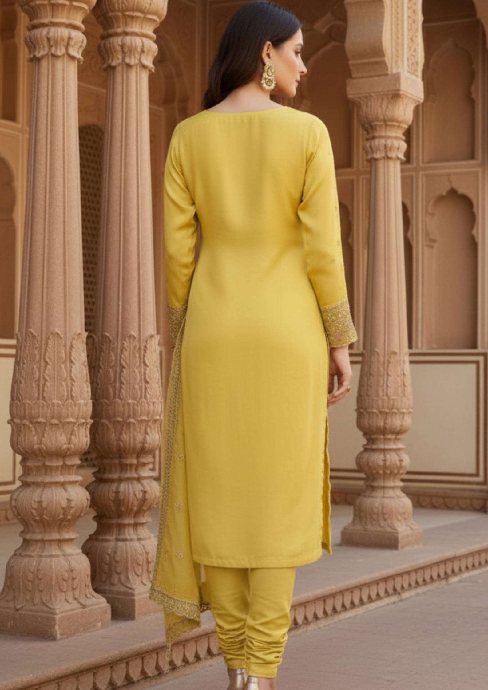 Semi-Stitched Pastel Yellow Organza With Embroidery Suit Material