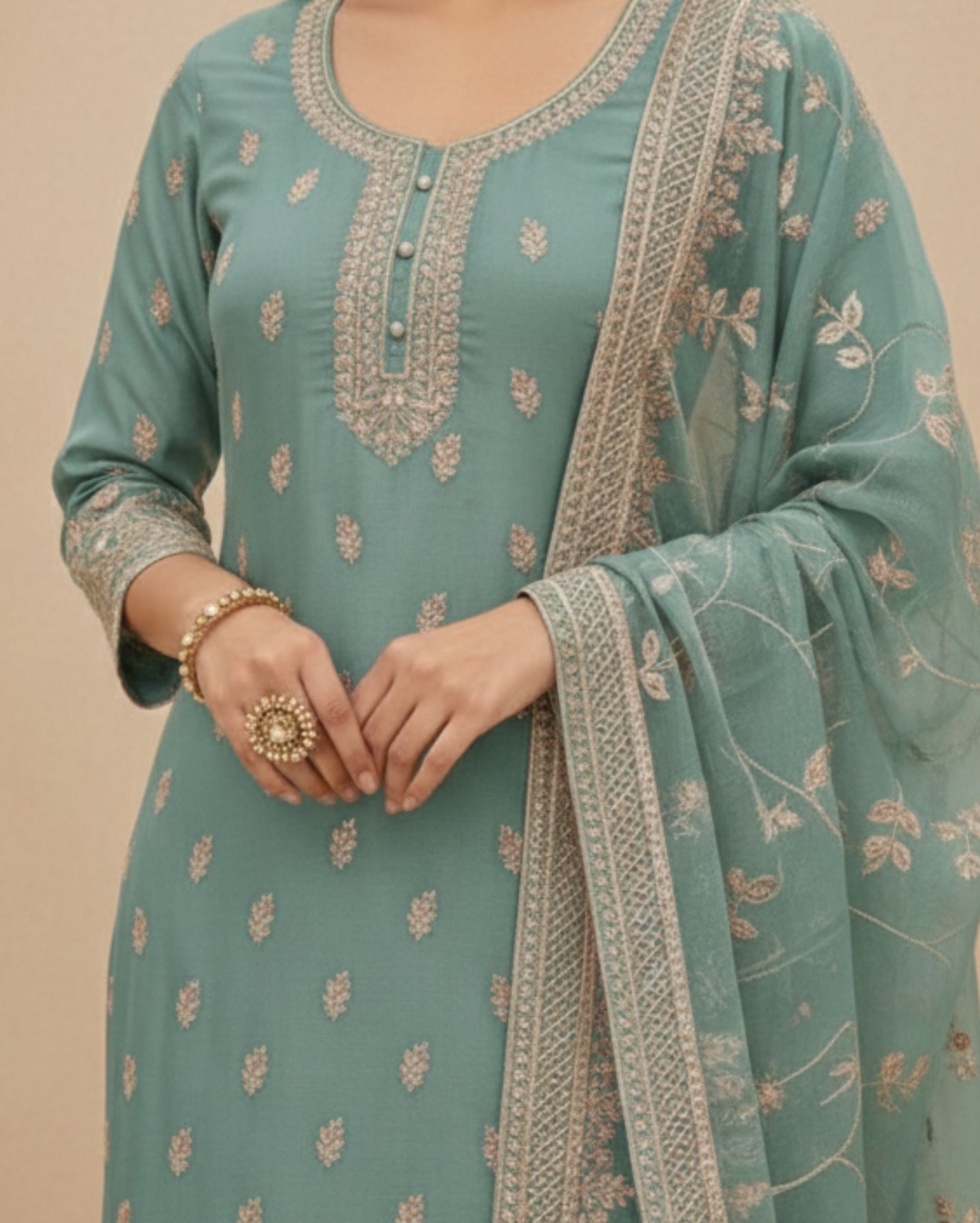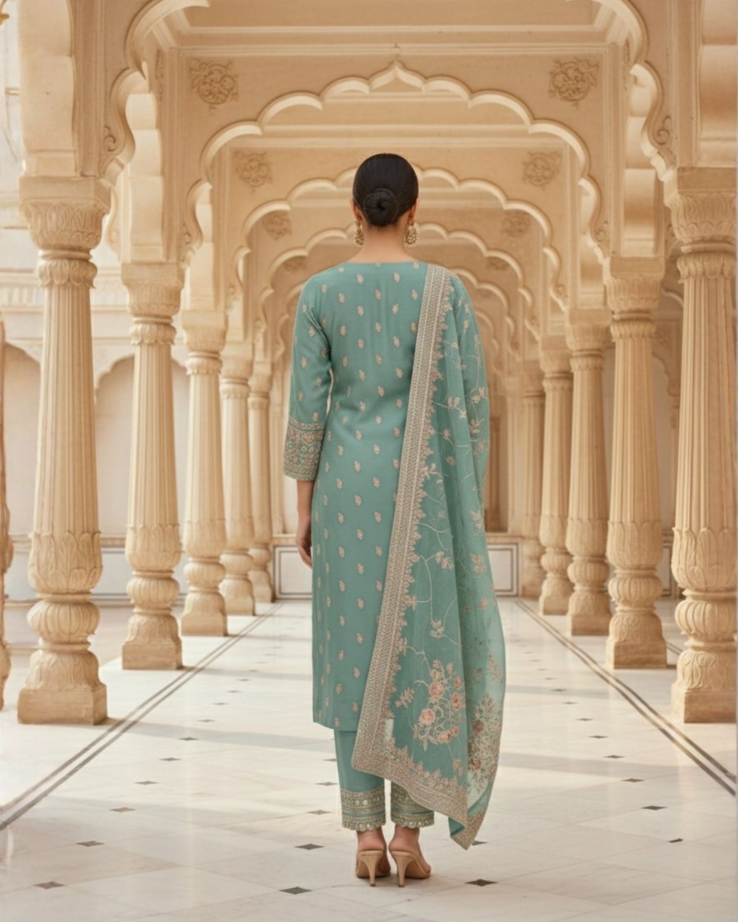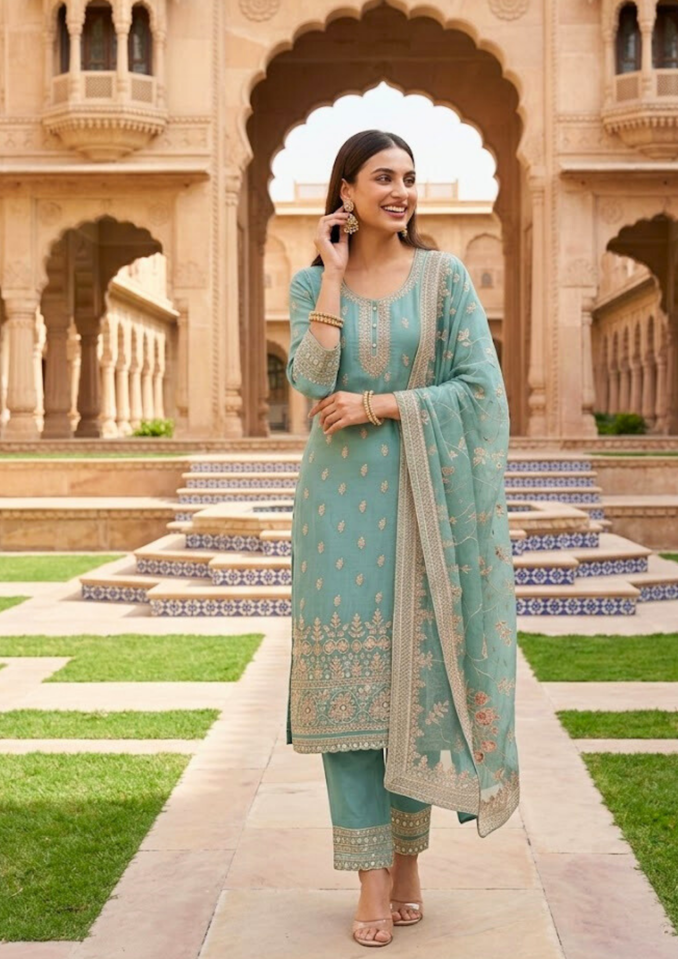 Semi-Stitched Light Aqua Pure Organza Suit With Delicate Zari–Resham Thread Embroidery