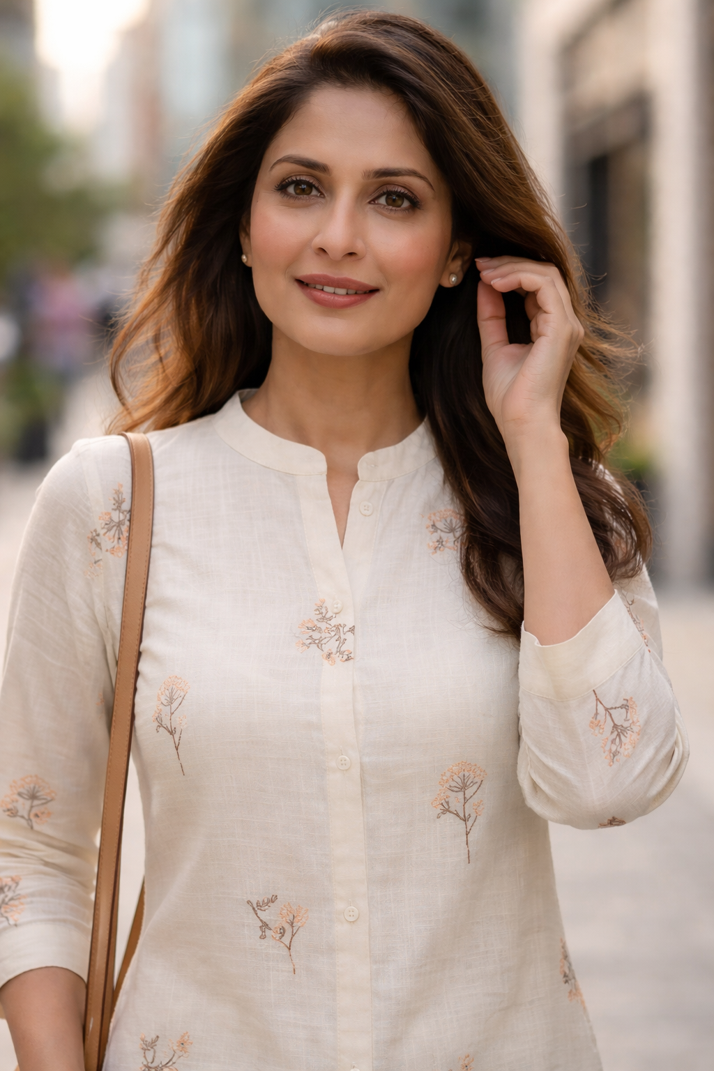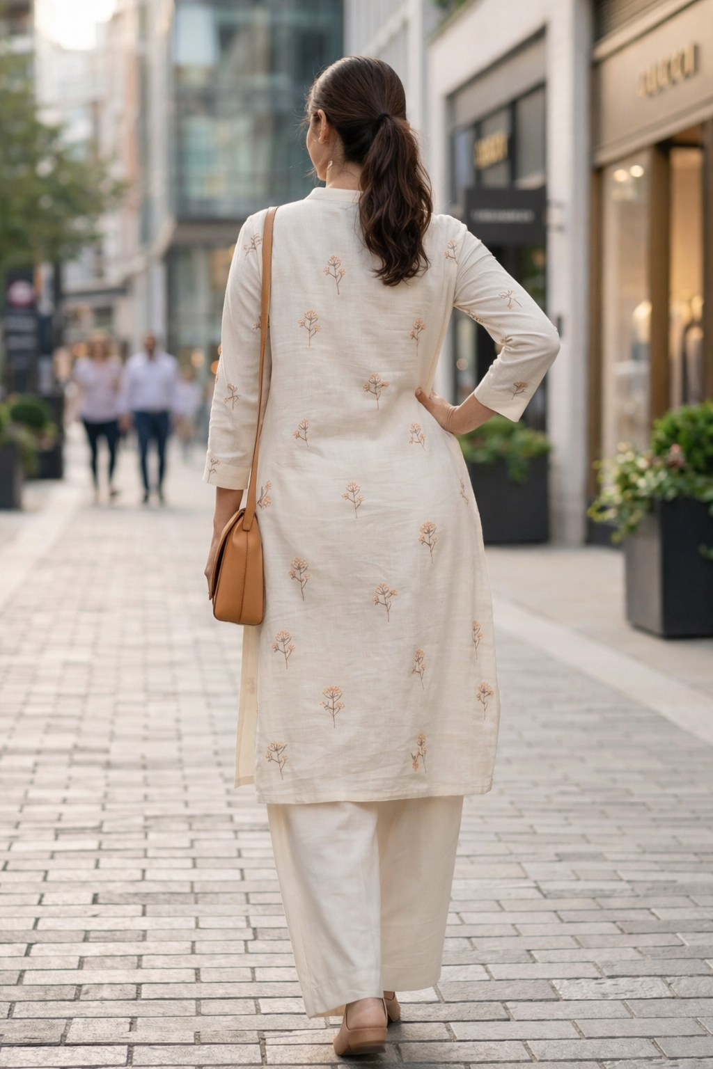 Cream Floral Embroidery Cotton Kurta