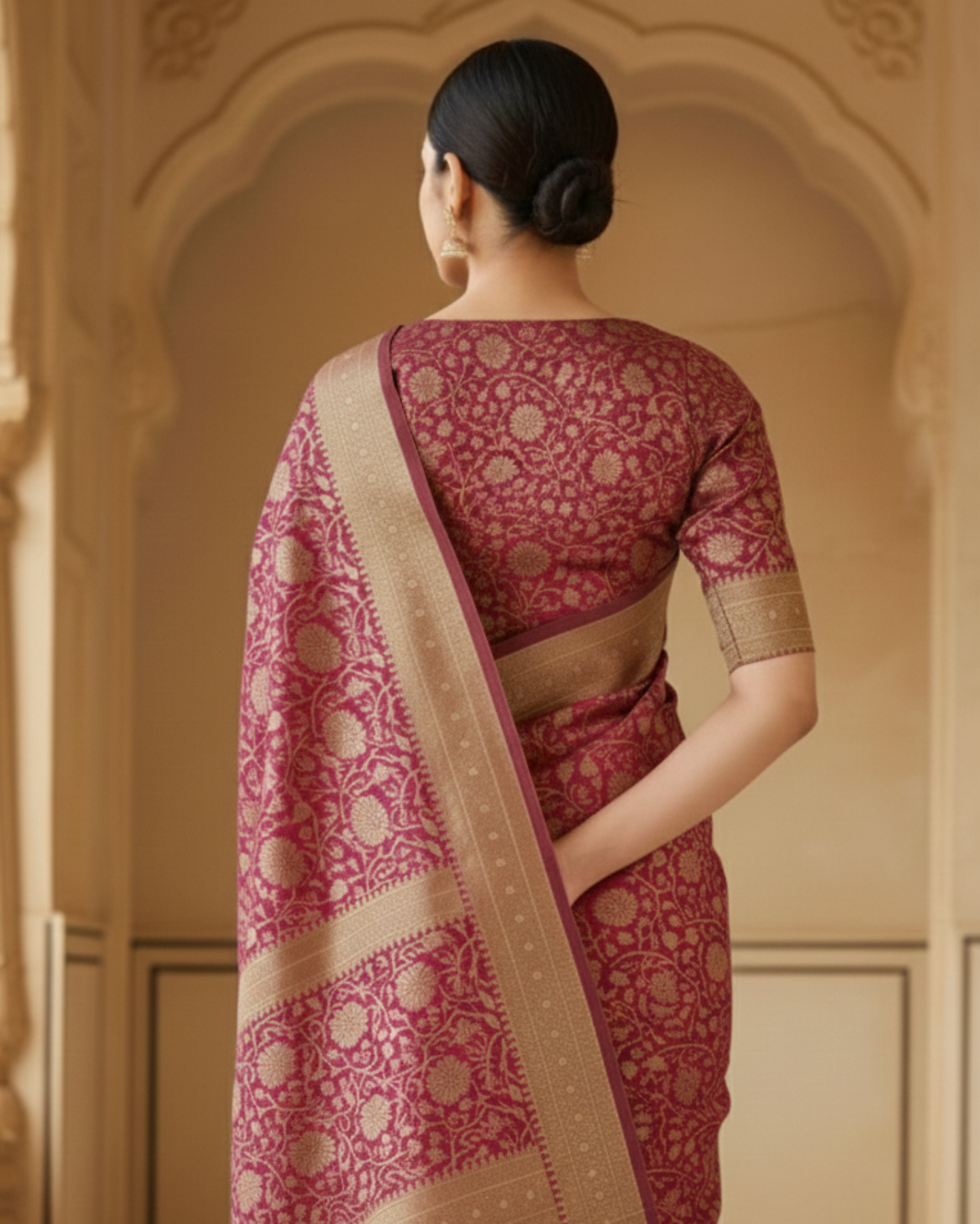 Plum-Mauve With Rich Gold Zari Floral Weave Banarasi Silk Saree