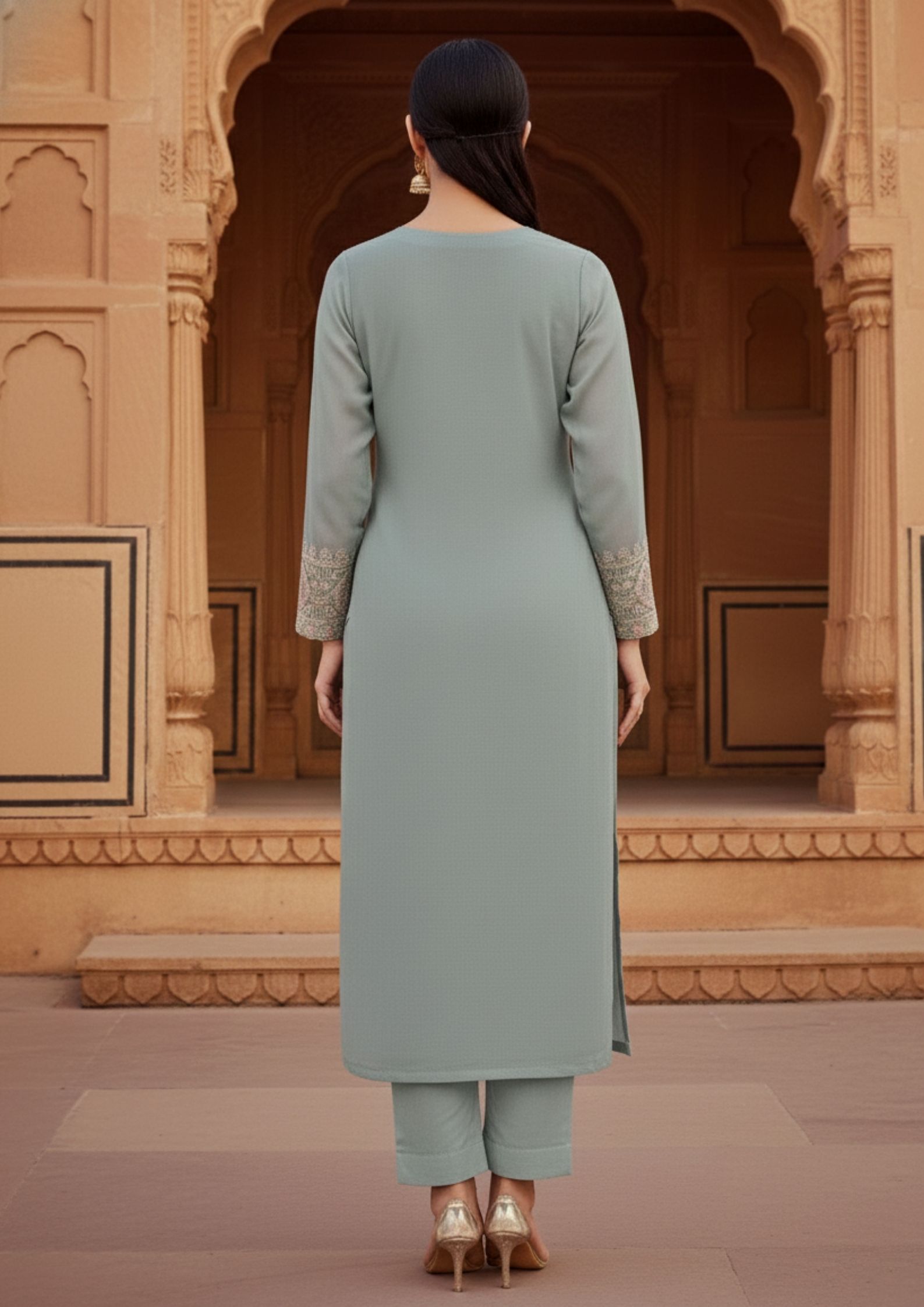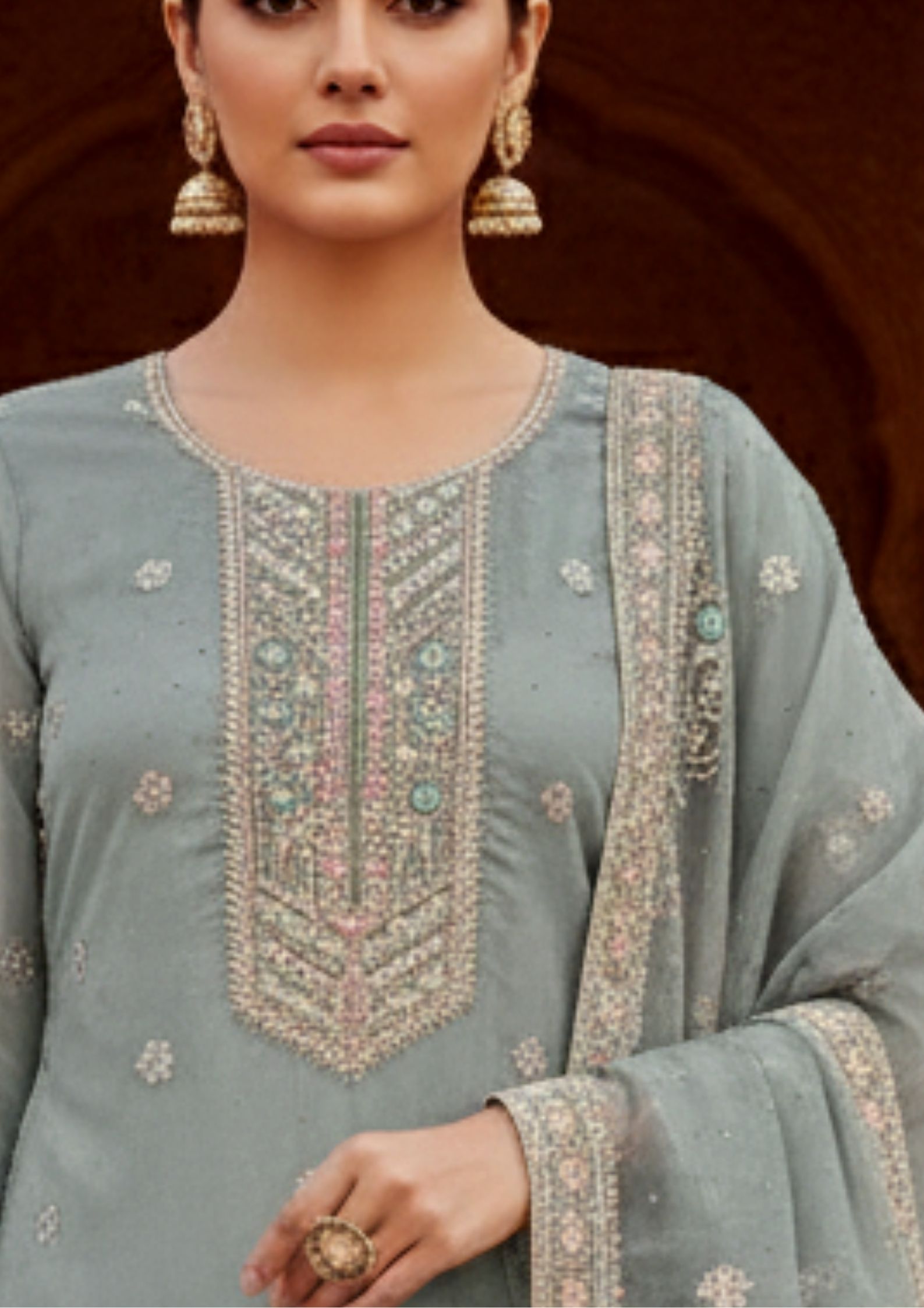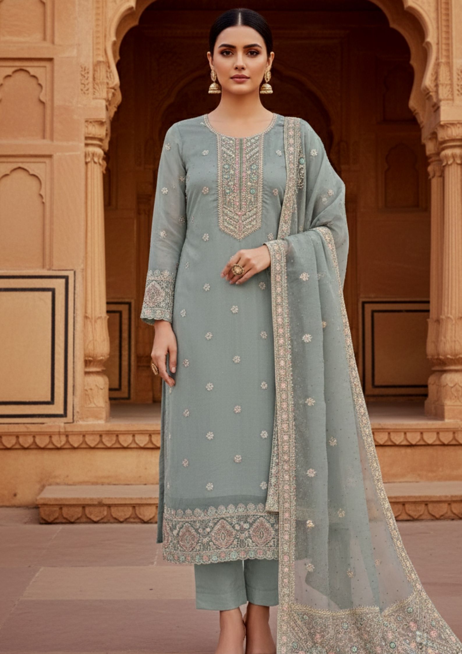 Sky Blue Semi-Stitched Embroidered Organza Suit Set With Dupatta