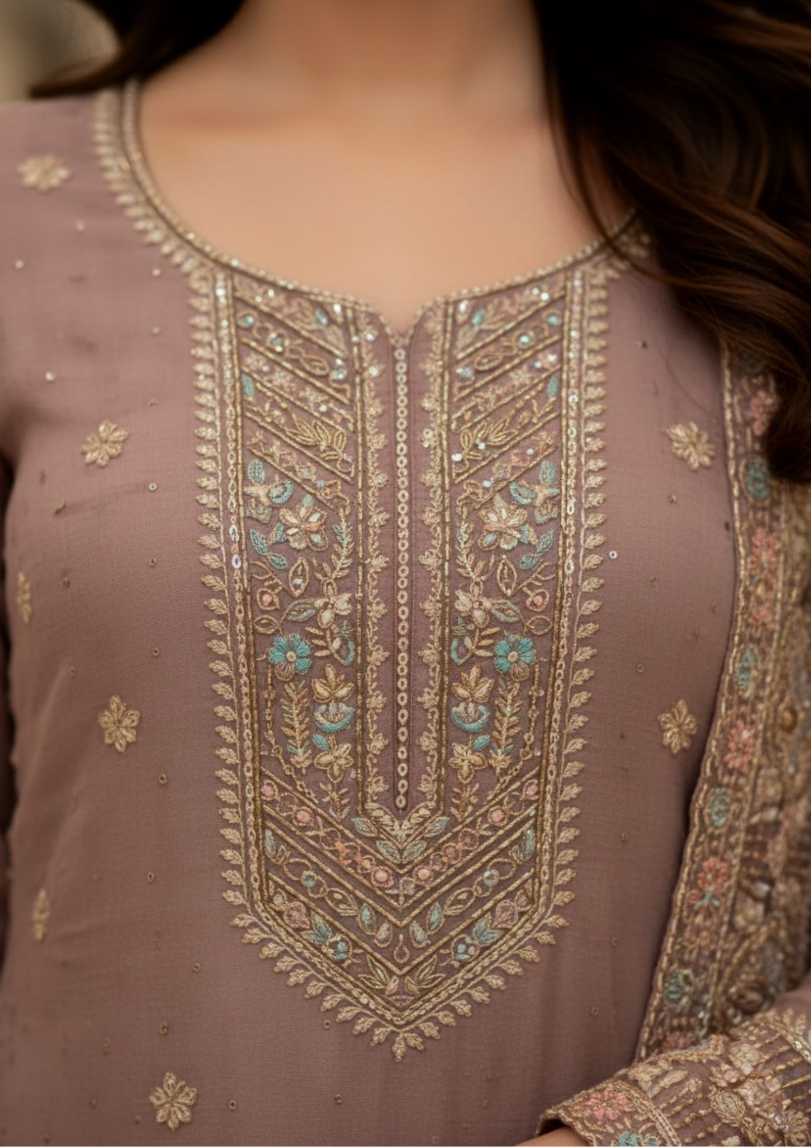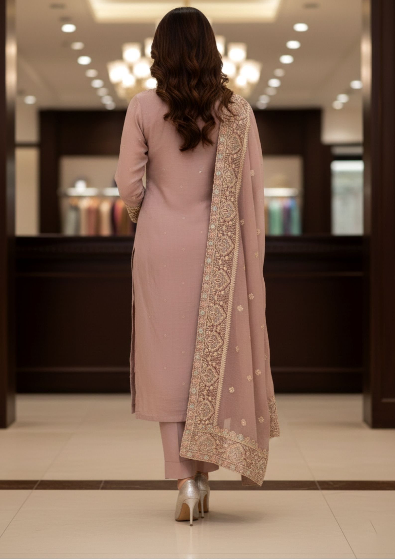 the royal coutureBlush Pink Semi-Stitched Soft Organza Suit Set With Dupatta