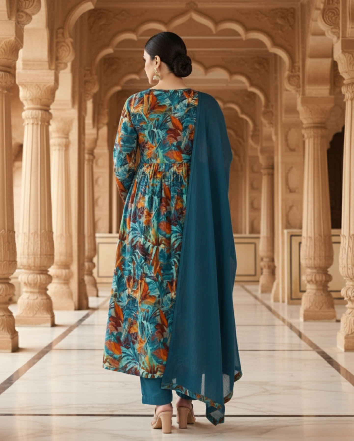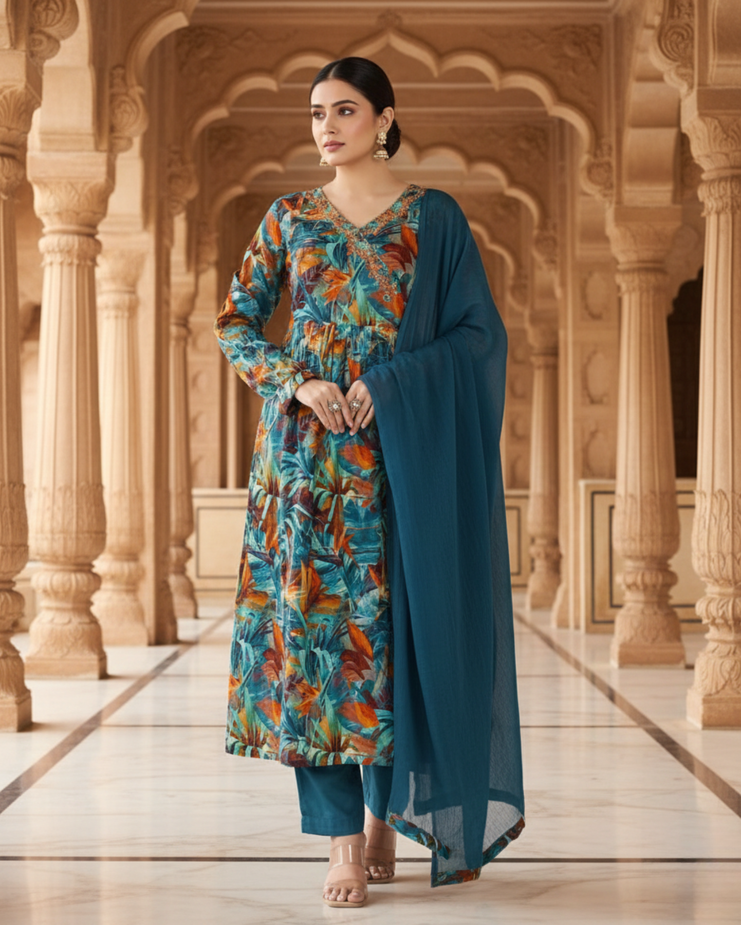cotton mix tropical print suit set with dupattaCotton Mix Tropical Print Suit Set With Dupatta