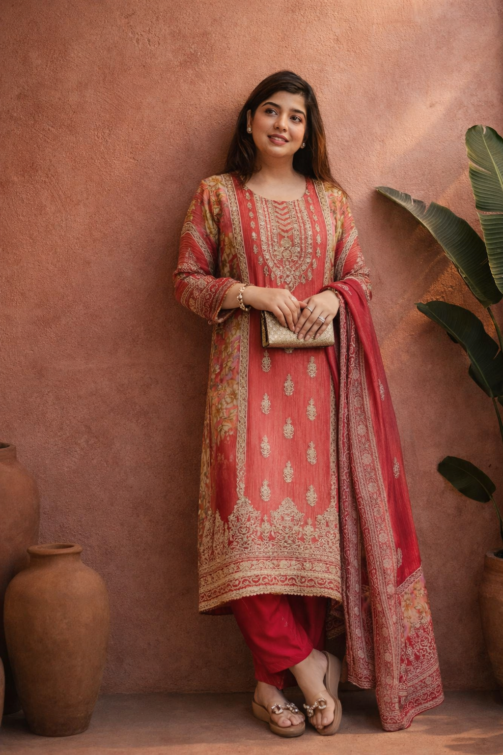 pink rayon digital printed kurta pant with traditional dupattaPink Rayon Digital Printed Kurta Pant With Traditional Dupatta