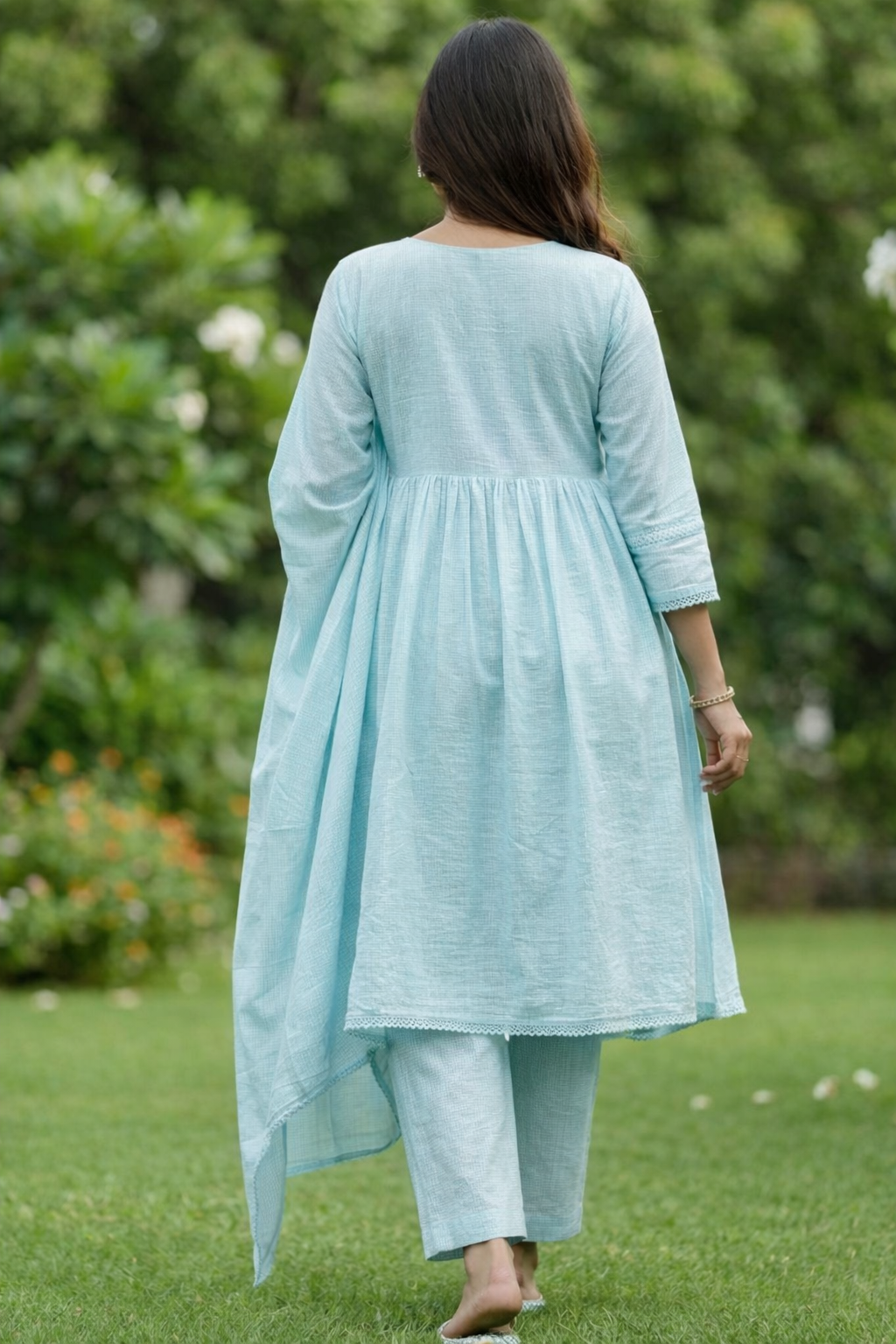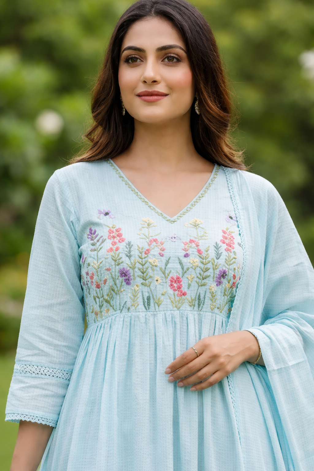 Pastel Blue malmal Embroidered Kurta pant Set with Dupatta