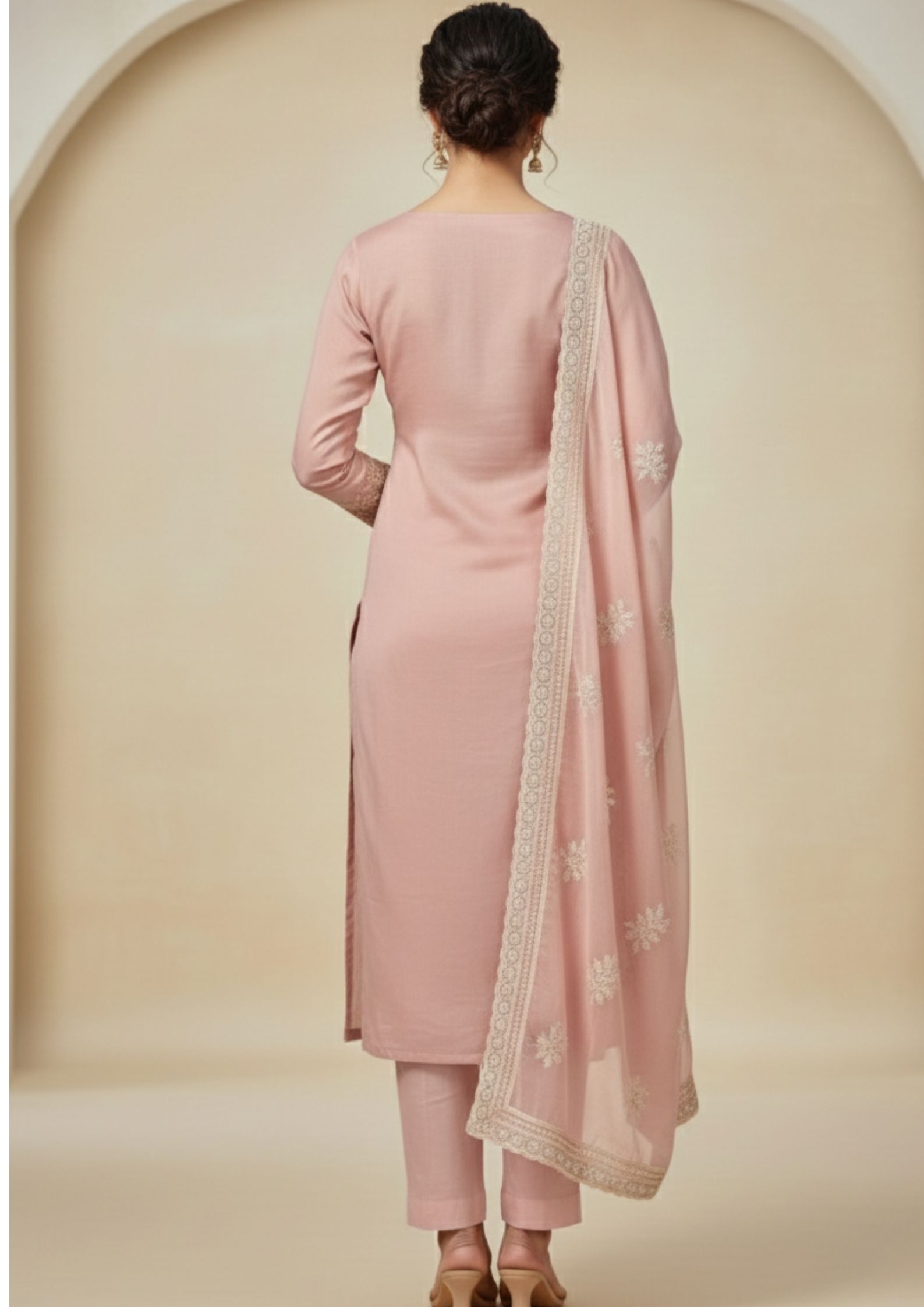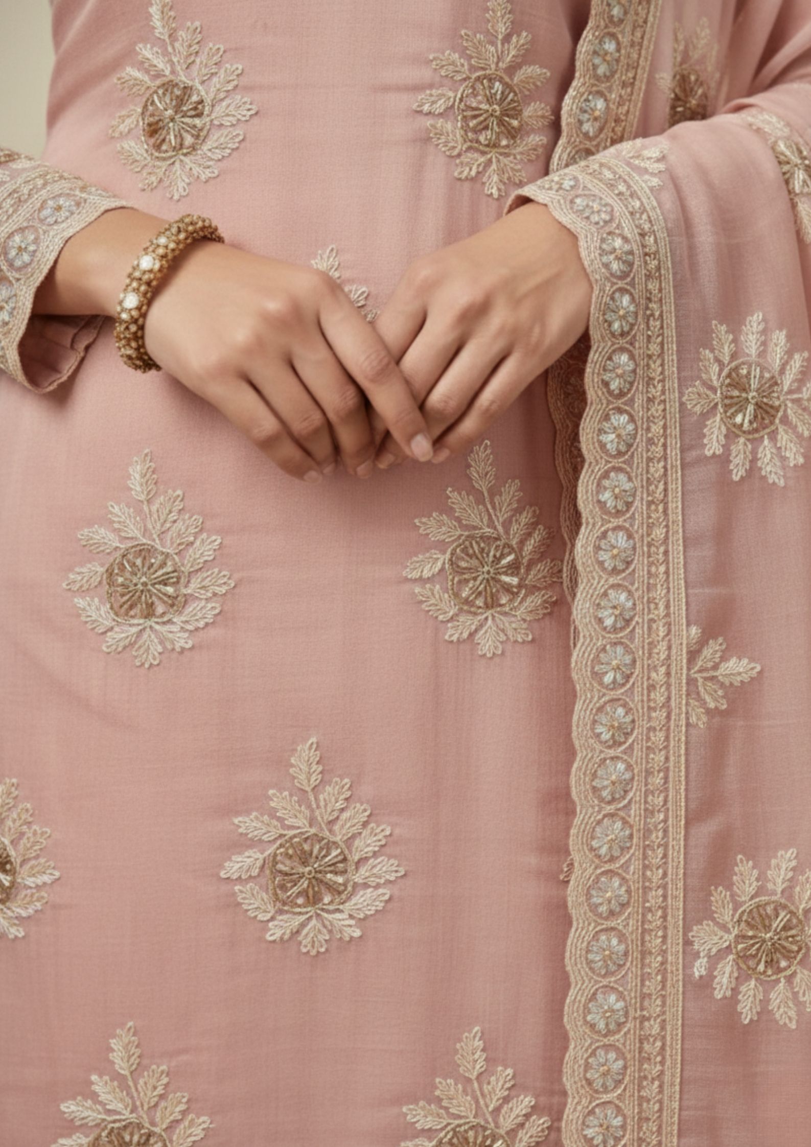 Unstitched Dusty rose pink organza suit with delicate sequin floral embroidery