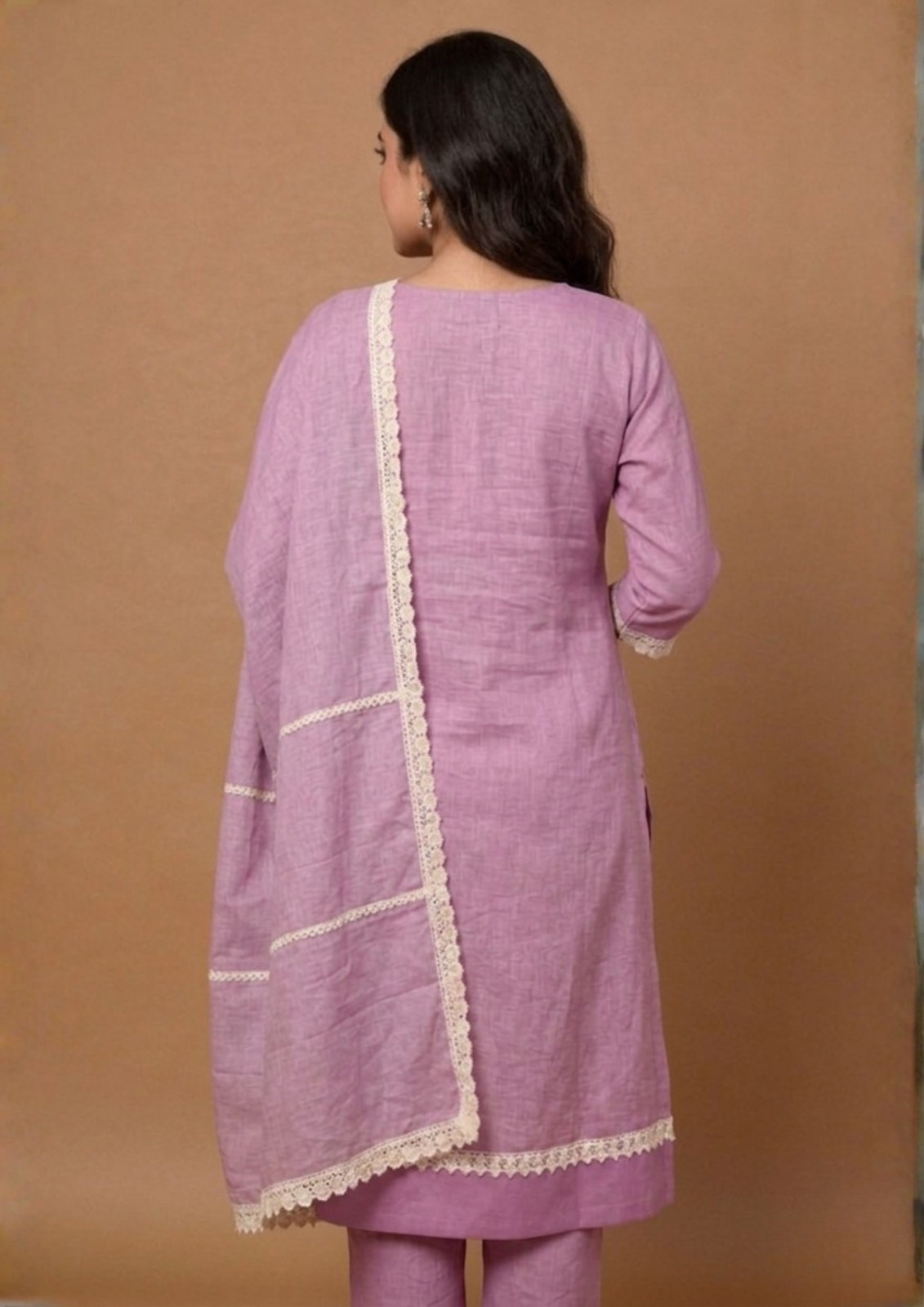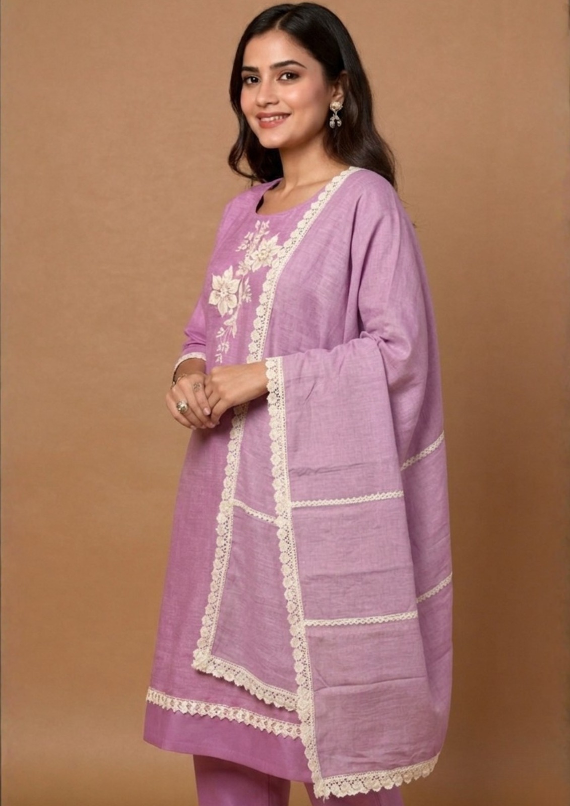 Unstitched purple embroidered cotton suit with dupatta