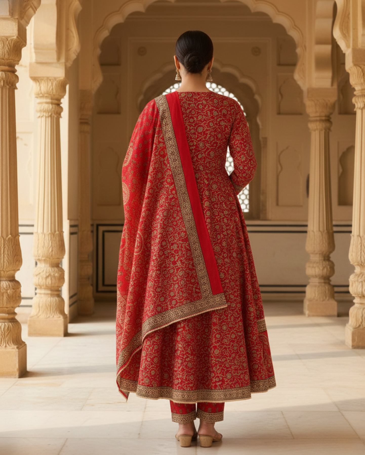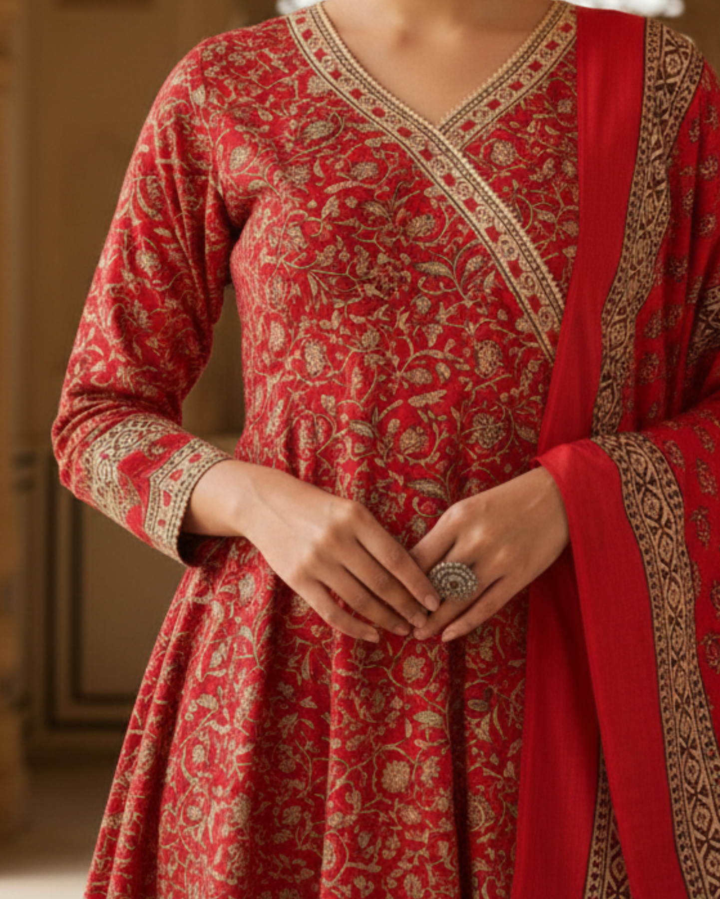 vibrant red cotton floral handblock sangneri angrakha style kurta set with dupattaVibrant Red Cotton Floral Handblock Sangneri Angrakha-Style Kurta Set With Dupatta